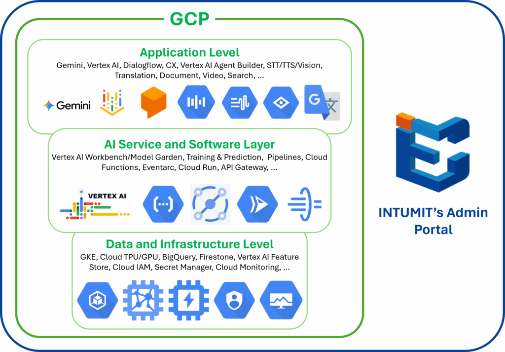 INTUMIT collabore avec la Plateforme Google Cloud pour fournir des solutions AI intelligentes et scalables dans les environnements d’entreprise. En intégrant les outils avancés GCP tels que Gemini, Vertex AI et Dialogflow CX, nous construisons des agents conversationnels multilingues, automatisons les workflows et améliorons l’engagement client sur plusieurs canaux.